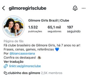 O perfil @gilmoregilrs no Instagram foi criado em 21 de setembro de 2021 e tem como principal objetivo manter a série presente no cotidiano dos fãs, mesmo após seu encerramento. Trata-se de uma página inteiramente dedicada ao público da série, com enfoque na recordação de momentos icônicos e na divulgação de atualizações pertinentes ao universo da produção televisiva. O conteúdo é disponibilizado diariamente no feed e nos stories, garantindo uma interação contínua com os seguidores.