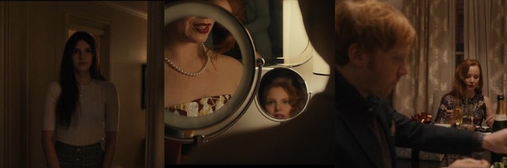 Outros eventos estranhos começam a acontecer na casa dos Turner. Sean, por exemplo, passa a se machucar com muitas farpas, presentes em lugares incomuns, como na comida e nos lençóis, além de perder completamente o paladar e a capacidade de sentir dor física. A família também recebe a visita do tio de Leanne, George (Boris McGiver), que, com uma aparência distinta e maneiras não convencionais, tenta convencer a menina a abandonar a família e voltar para casa. Dessa forma, a estranheza e o suspense construídos pelos recursos técnico-expressivos são reforçados, também, no plano do conteúdo. Nesse sentido, por meio das atuações e da construção dos personagens, Dorothy e Leanne incorporam essa estranheza, se afastando de representações ordinárias.